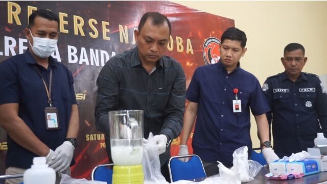 Barang bukti sabu dimusnahkan dengan cara dilarutkan menggunakan alkohol, kemudian diblender hingga hancur, dan selanjutnya dibuang ke dalam septic tank di lingkungan Mapolresta Banda Aceh.