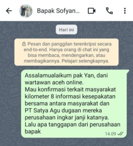 Ia juga menegaskan bahwa pemerintah desa sebelumnya telah memberikan jaminan bahwa masyarakat tidak akan lagi mengajukan tuntutan atau mengganggu aktivitas perusahaan jika perjanjian itu direalisasikan. Namun dengan langkah terbaru PT Satya Agung, jaminan tersebut disebut tidak dapat lagi dipegang.