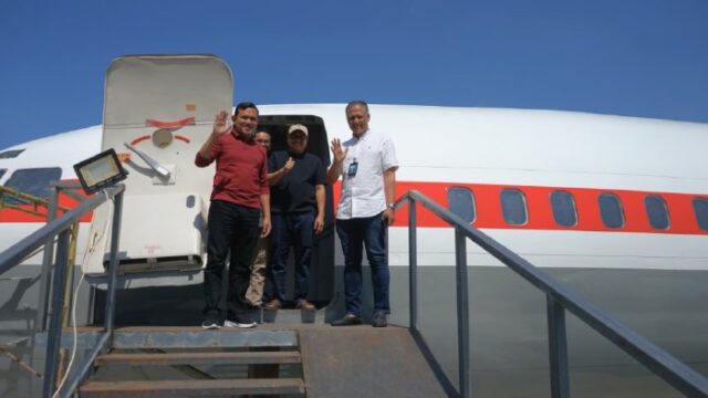 Banda Aceh — Wakil Gubernur Aceh, Fadhlullah, meninjau progres pembangunan pesawat Boeing 737 non-operasional yang ditempatkan di kawasan Asrama Haji Aceh, Sabtu, 31 Januari 2026. Pesawat ini dipersiapkan sebagai wahana simulasi perjalanan udara bagi calon jamaah haji dan umrah, serta digadang menjadi wahana manasik pertama di Indonesia.
